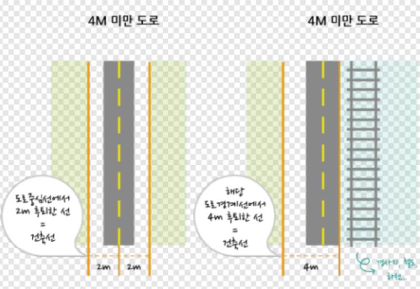 도로는 무조건 왕복 4m를 확보해야 합니다.
