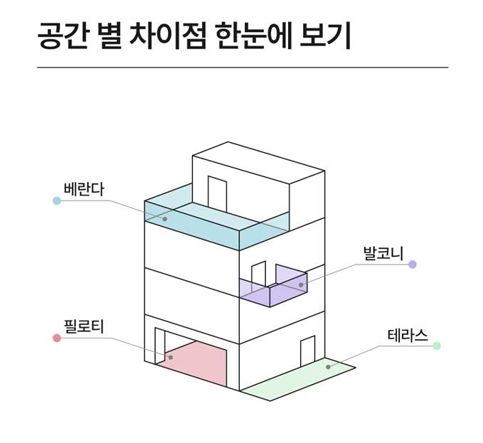 베란다를 흔히 테라스라고 잘못 말하기도 합니다. ‘테라스가 있는 멋진 집’ 이라고 합니다. 앞서 저도 빌라를 설명할 때 테라스라고 표현하기도 했습니다.