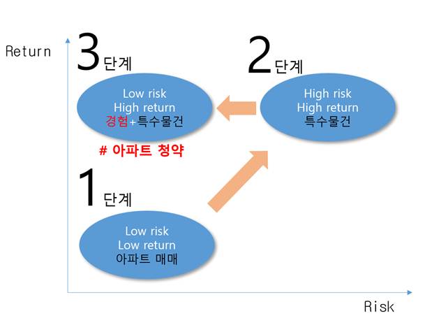 주택청약 제도는 많은 장점들이 있습니다. 하지만 큰 맹점도 있습니다. 숙련의 과정 없이 대박을 누리게 해줍니다. 물론 청약도 전략이라 공부를 많이 하면 그만큼 청약 당첨의 확률은 높아집니다. 하지만 일반적으로 공부를 많이 하지 않습니다. 조건만 잘 맞추면 당첨이 됩니다. 운이 따라줘야 합니다. 그 운이 3단계의 수준인 low risk high return으로 직행하게 해 줍니다.